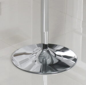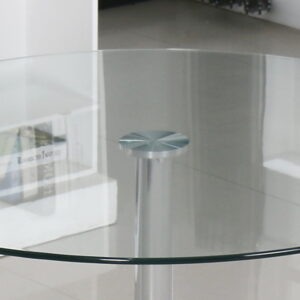Mesa redonda tapa cristal y pie central cromado.