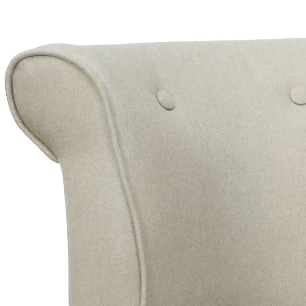 Butaca tapizada en tela, con dos botones en el respaldo y vivos sencillos en las costuras.  Patas de madera en acabado natural.  Disponible en color azul.  Se sirve en cajas de 2 unidades.  Medidas: 52*60*75 cm.